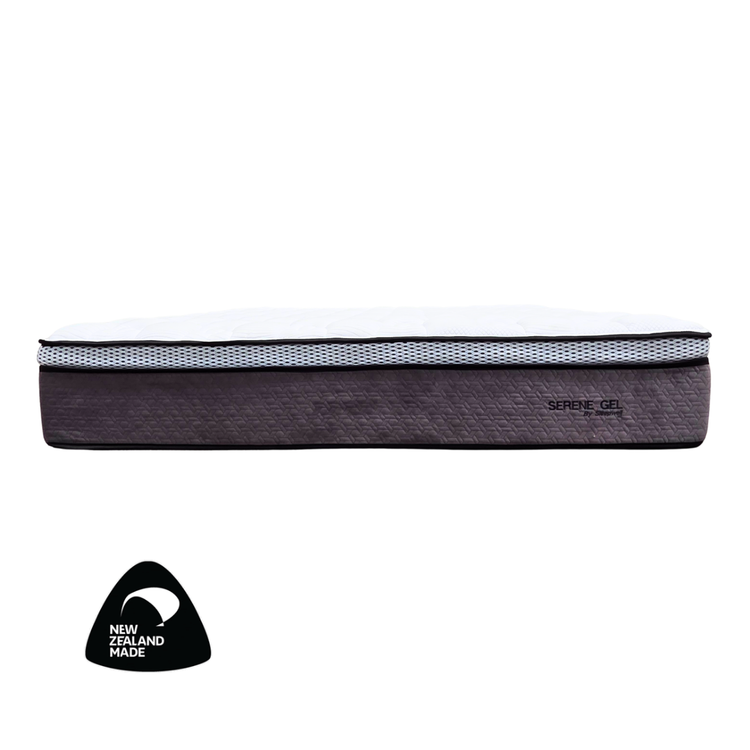 Elevate your sleep experience with the Serene Gel Bed, where modern cooling technology meets natural luxury. This mattress features an exquisite Cashmere cover that adapts to the seasons, ensuring distinct comfort year-round. Beneath the surface, a layer of Air Cool Gel-Infused Memory Foam actively regulates temperature while contouring to your body. Supported by a robust Orthopaedic spring system and high-density Dunlop foam, the Serene Gel Bed offers a refreshing, supportive, and deeply restorative night's sleep.