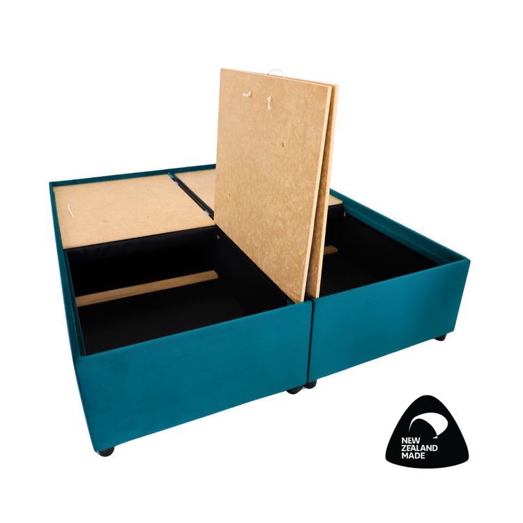 Say goodbye to clutter with our NZ Made Budget Storage Bed Base – the smart way to maximize your bedroom space. Featuring a spacious 35cm inside storage compartment, this base is built from solid pine, plywood, and TRI board for long-lasting durability. Choose from over 50+ fabric colours (at no extra cost!) to match your décor.